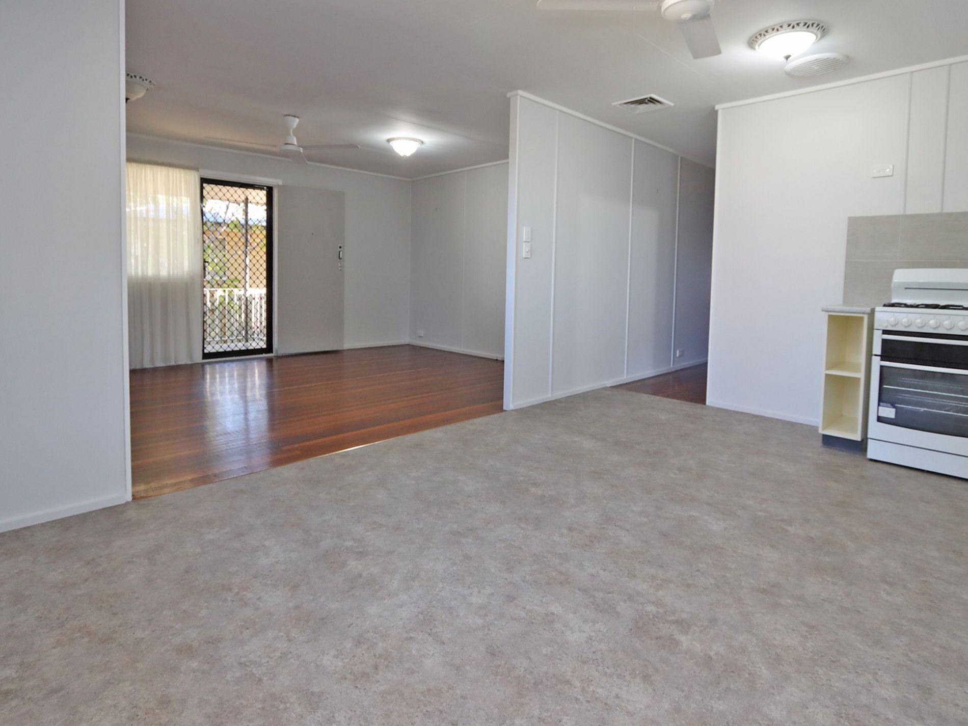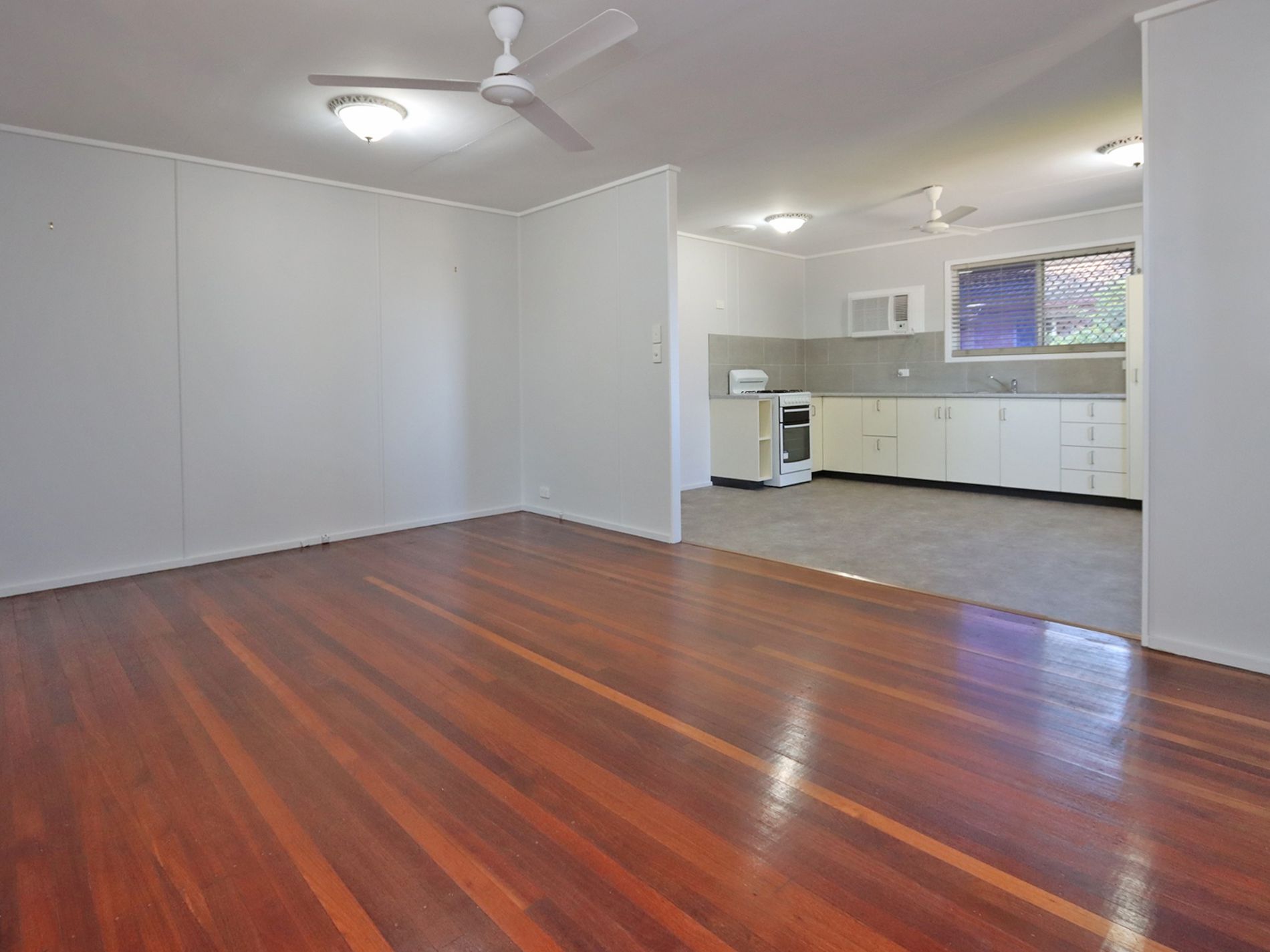 The kitchen is an impressive size, offering plenty of room for a dining table or island bench, along with generous storage. It also features an air conditioner and a good-sized stove/oven combo—ideal for those who enjoy cooking. The polished floorboards in the spacious lounge room add charm and character, creating a warm and welcoming living space.