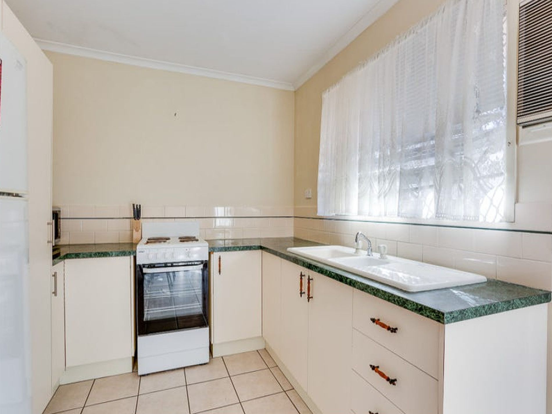 The kitchen is the heart of this home. Featuring generous bench and storage space, it adjoins the dining area and has a view of the courtyard.